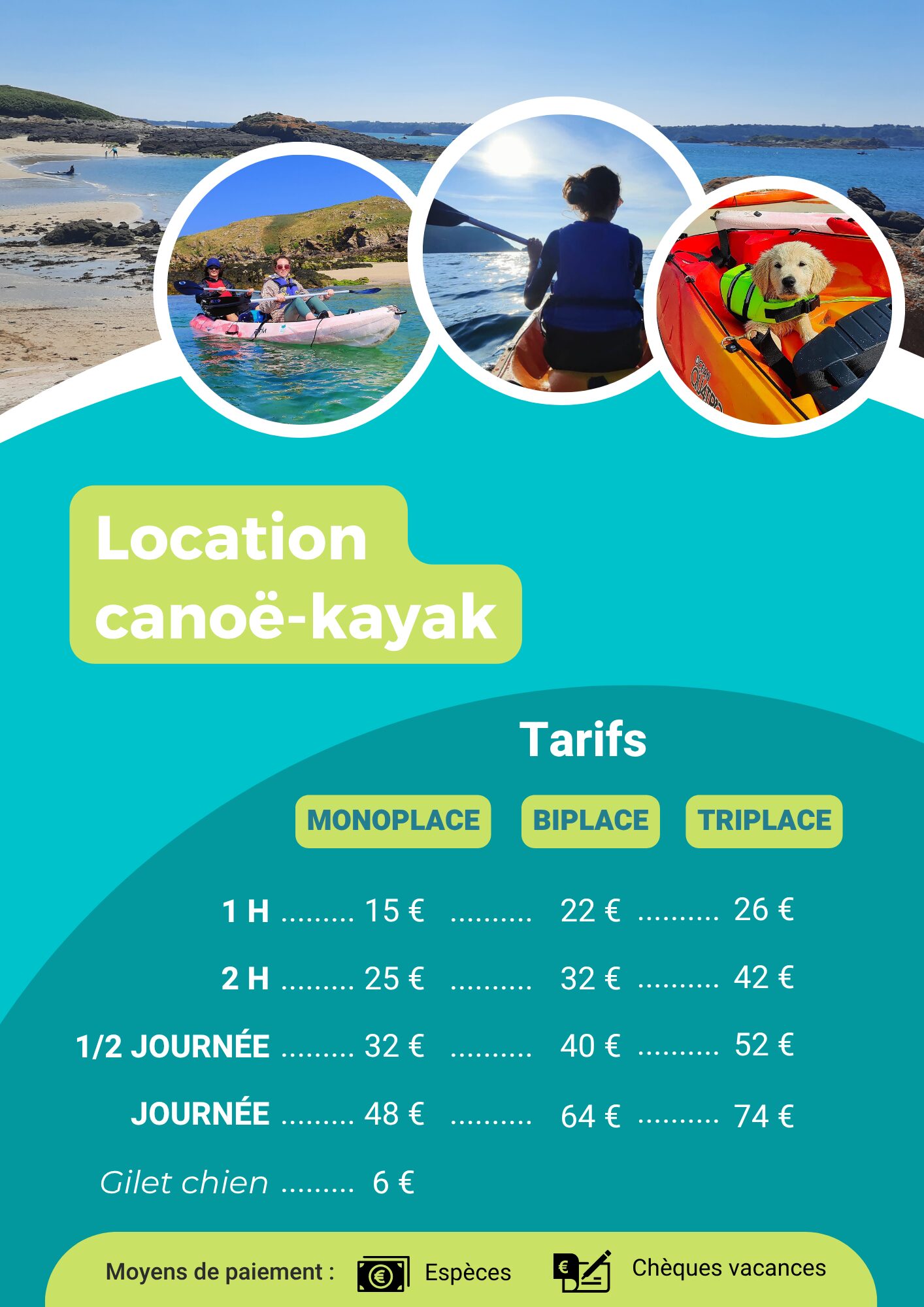 Avec la location de kayak de mer à Saint-Malo, Saint-Cast le Guildo ou Saint-Lunaire, seul ou en groupe, entre amis ou en famille, vous créez votre journée à la carte, selon vos envies. En une heure, une demi-journée une journée complète, la pratique du kayak est idéale pour vous évader et admirer la beauté du paysage !
